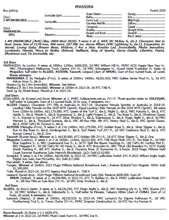 MASSIRA (AUS) 2020 Bay Gelding by I Am Invincible out of Marrakesh