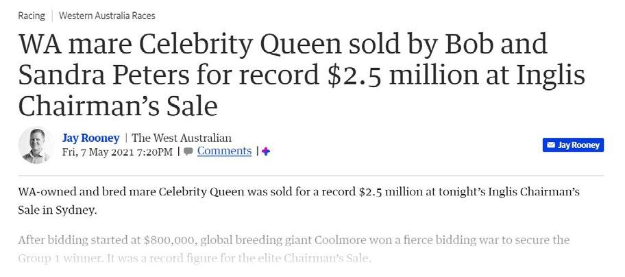 I appreciate that the potential sale of Stretan Angel will not be front of mind for you all — and understandably so. From winning Stakes races at two, to defeating a high-class field in the Danehill as a spring threeyear-old, to going down by a head in the G1 Goodwood, her record is fantastic. She continues to race well and looks likely to enhance her record even further through the balance of the season.