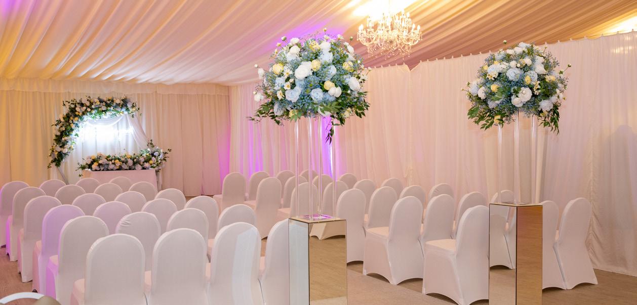 The Grand Marquee’s modern & flexible design means you can close of areas to make a more intimate setting. With floor to ceiling fairy lights, combined with our state-of-the-art sound system will ensure your big day is everything you ever dreamed off, combined with its own private entrance, luxurious toilets & bridal suite, dreams really do come true when you book the Grand Marquee.