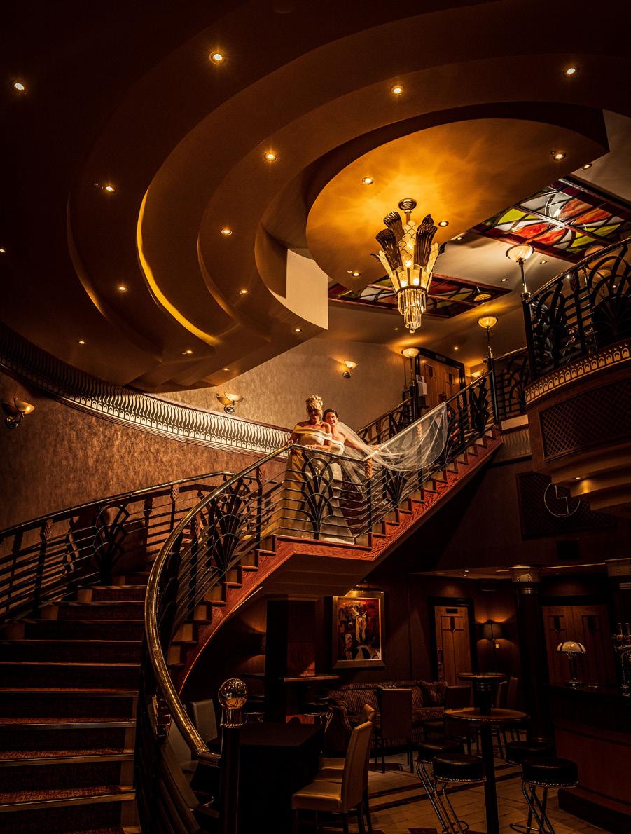 This two-tier suite. which offers seating for up to 120 people. and up to an additional 60 guests in the evening, has two stylish bars: our feature bar downstairs. plus a Champagne bar that really delivers the wow-factor within the main suite upstairs. It’s a unique and wonderful space for both your wedding ceremony and reception.