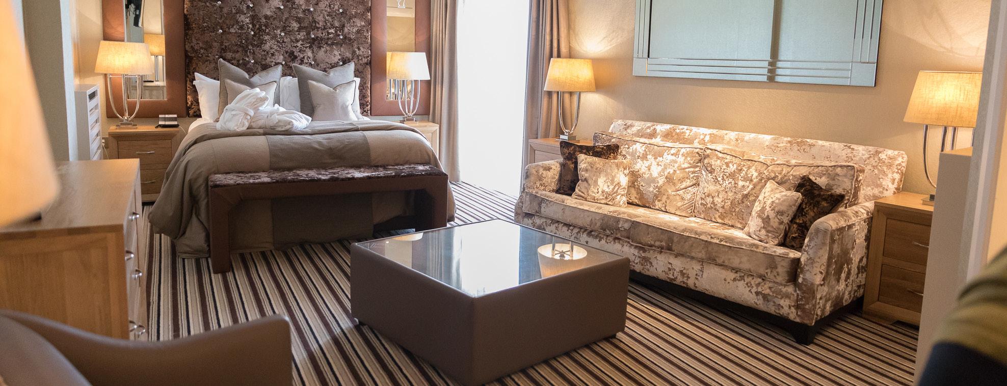 Finally, for those really looking to indulge, the luxuriousness of our Honeymoon Junior Suite won’t disappoint. The large living space and en-suite with jacuzzi bath and walk-in shower is the perfect way to spend the weekend or week with us. We provide robes and slippers with our Junior Suite, perfect for those wishing to really indulge during their escape to Ingliston Country Club.