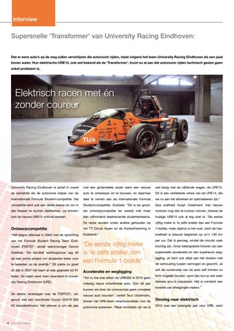 hoven (FSRTE)”, vertelt teammanager Dennis Gubbels. “De faculteit werktuigbouw zag dit als een prima project om studenten beter voor te bereiden op de praktijk.” Dit pakte zo goed uit dat in 2007 het team al was gegroeid tot 61
