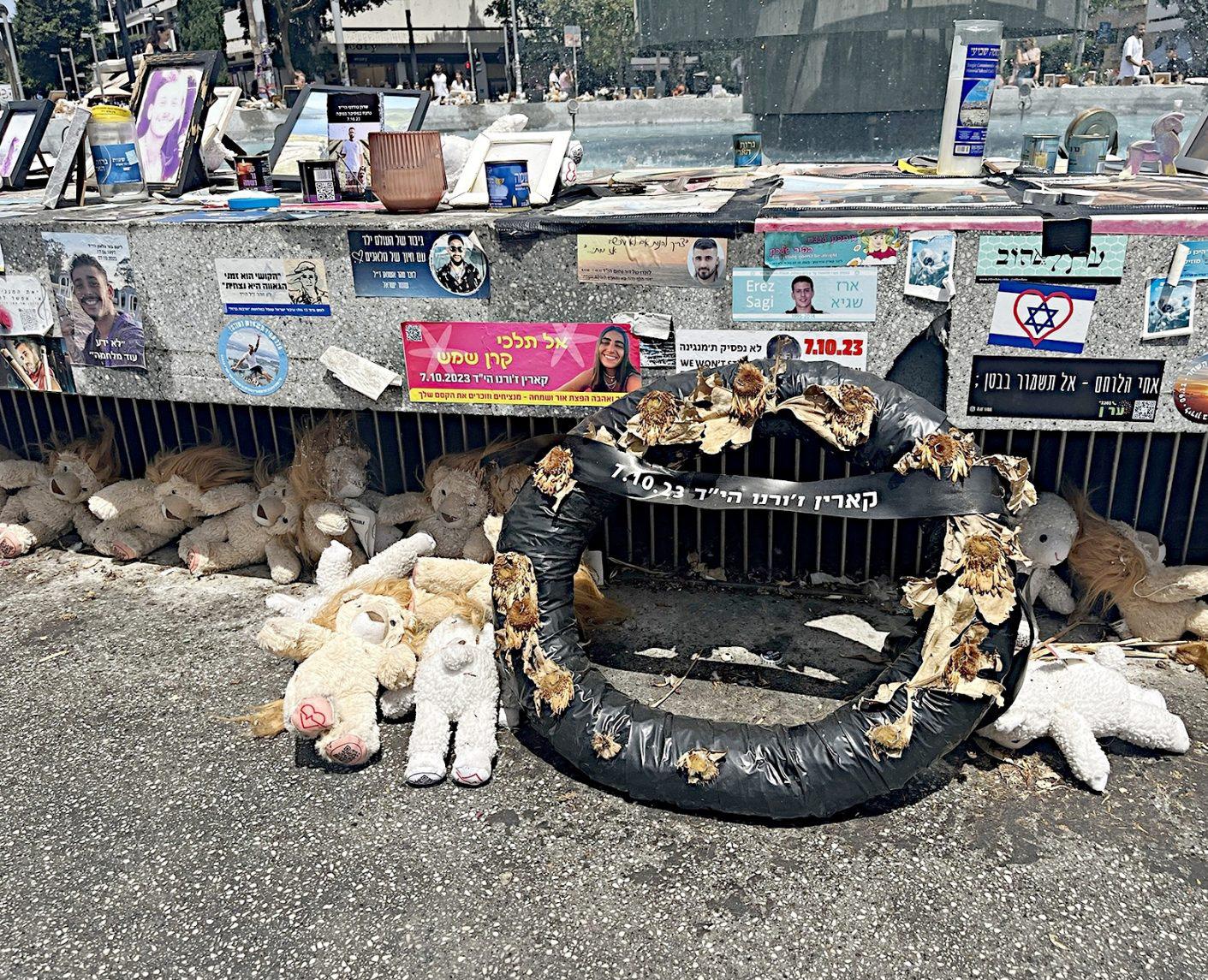 La fuente de la plaza pública Dizengoff se convirtió en un memorial para estas mil 200 víctimas. Están sus fotografías y sus nombres, acompañados de velas, flores, peluches o demás muestras de cariño, una especie de ofrenda.