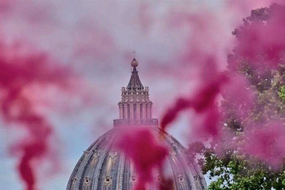 En un parque con vistas a la cúpula de San Pedro, donde se reúnen los cardenales en cónclave, las activistas replicaron la tradicional fumata blanca que anuncia la elección de un papa, pidiendo que también se permita a las mujeres presentarse a la ordenación.