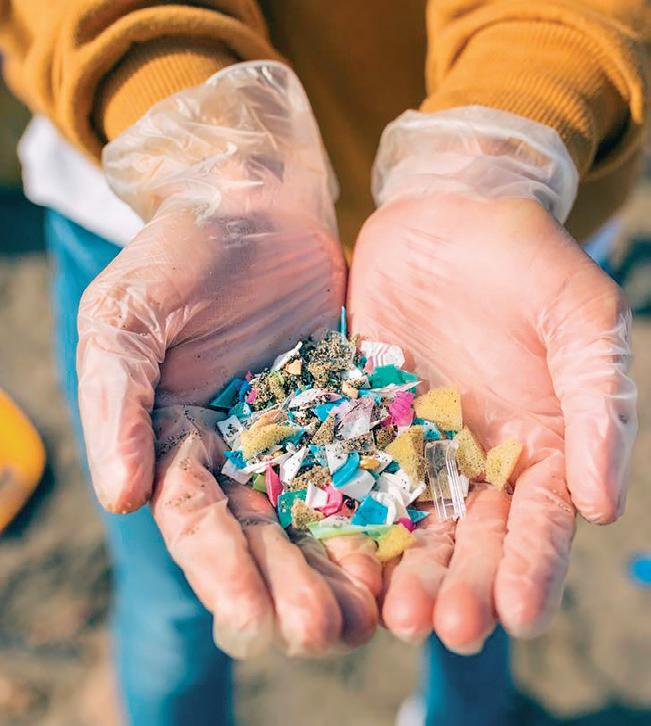 Los microplásticos se producen cuando los elementos de plástico se degradan o se añaden intencionalmente a determinados productos, como las microperlas de los exfoliantes corporales. Cuando llegan al agua y a la tierra, los microplásticos entran en la cadena alimentaria.