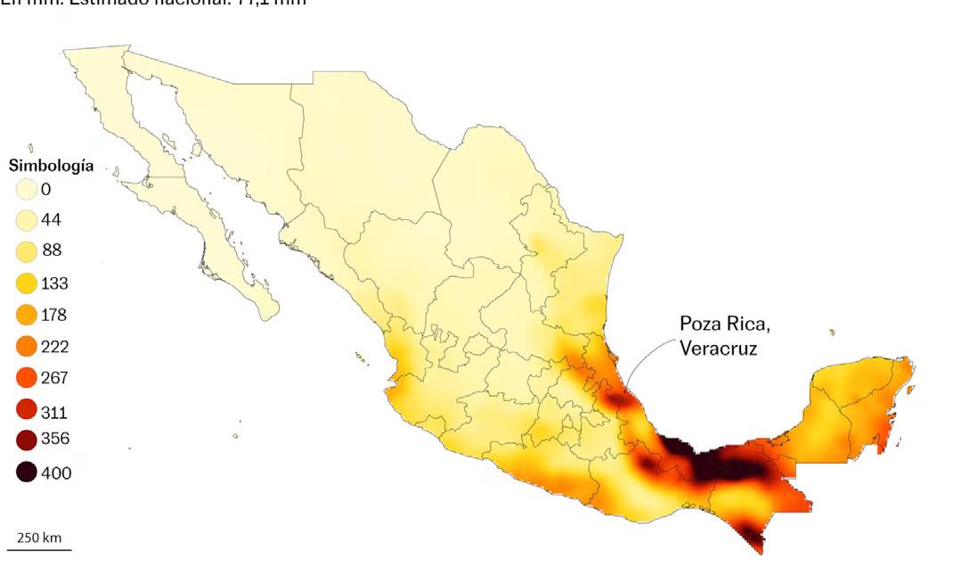 Hace 12 días que comenzó a llover cerca del río Cazones. La Huasteca veracruzana, acostumbrada a la humedad y a sus ríos sinuosos, convive con las lluvias, pero las precipitaciones incrementaron de manera desproporcionada. El viernes 10 el río se desbordó, subió aproximadamente cuatro metros sobre su nivel habitual y se llevó a personas y autos en el camino. Los efectos continúan hasta hoy. La Comisión Nacional del Agua (Conagua) ya proyectaba, desde el mes de agosto, que las lluvias serían intensas. La zona esperaba hasta 400 milímetros (mm) de lluvia. Esto superaba todos los récords recientes de Poza Rica. En octubre de 2007, cuando sumó más de 300 mm, se desalojaron cerca de 500 toneladas de lodo y escombros de la calle, desde entonces los pobladores exigían cambios en la infraestructura para evitar que se repitiera, en 2019 se repitió la promesa. Históricamente, octubre es el mes en el que más se presentan lluvias.