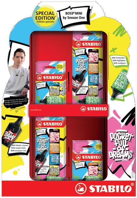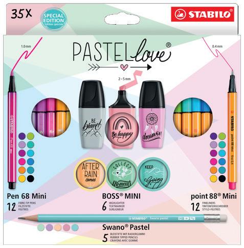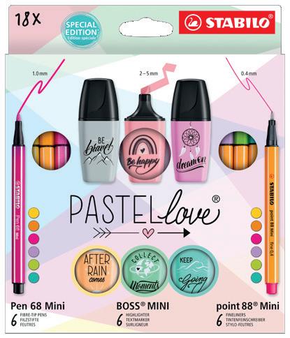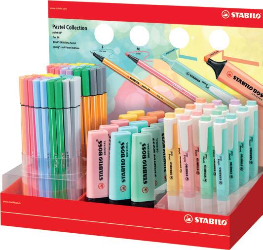 per fet ti per liberare la propria creatività! Elegante set in car tone, con appendino, contiene: 34 pz . Pen 68: 68/12, 13, 14, 19, 22, 23, 28, 30, 32, 36, 37, 43, 4 4, 45, 4 6, 4 8, 51, 53, 55, 56, 57, 58, 62, 66, 85, 89, 93, 9 6, 98, 033, 0 41, 0 4 4, 05 4, 056; 34 pz point 88: 8 8/12, 13, 14, 19, 22, 23, 28, 30, 36, 37, 4 0, 41, 43, 4 4, 45, 4 6, 51, 53, 55, 56, 57, 58, 62, 66, 85, 89, 93, 9 6, 98, 024, 031, 033, 05 4, 056 Elegante set in car tone, con appendino, contiene: 5 pz BOSS ORIGINAL Pastel: 70/113, 125, 133, 158, 19 4; 9 pz wood y 3in1: 8 80/10 0, 201, 301, 302, 303, 355, 4 02, 503, 570; 12 pz . STABILOaquacolor: 160 0/10 0, 20 0, 205, 220, 221, 350, 355, 365, 455, 505, 536, 550; 12 pz Pen 68: 68/11, 12, 23, 25, 28, 29, 34, 62, 67, 8 8, 93, 9 4; 12 pz point 88: 8 8/11, 12, 23, 25, 28, 29, 34, 4 6, 62, 67, 8 8, 93