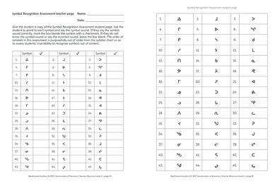 At the earliest stages of development (Pre-reader and Early Emergent), there is a heavy focus on teaching symbol-sound relationships. Once students have learned all the sounds represented on the syllabic chart, they should be able to sound out any word that they come across.