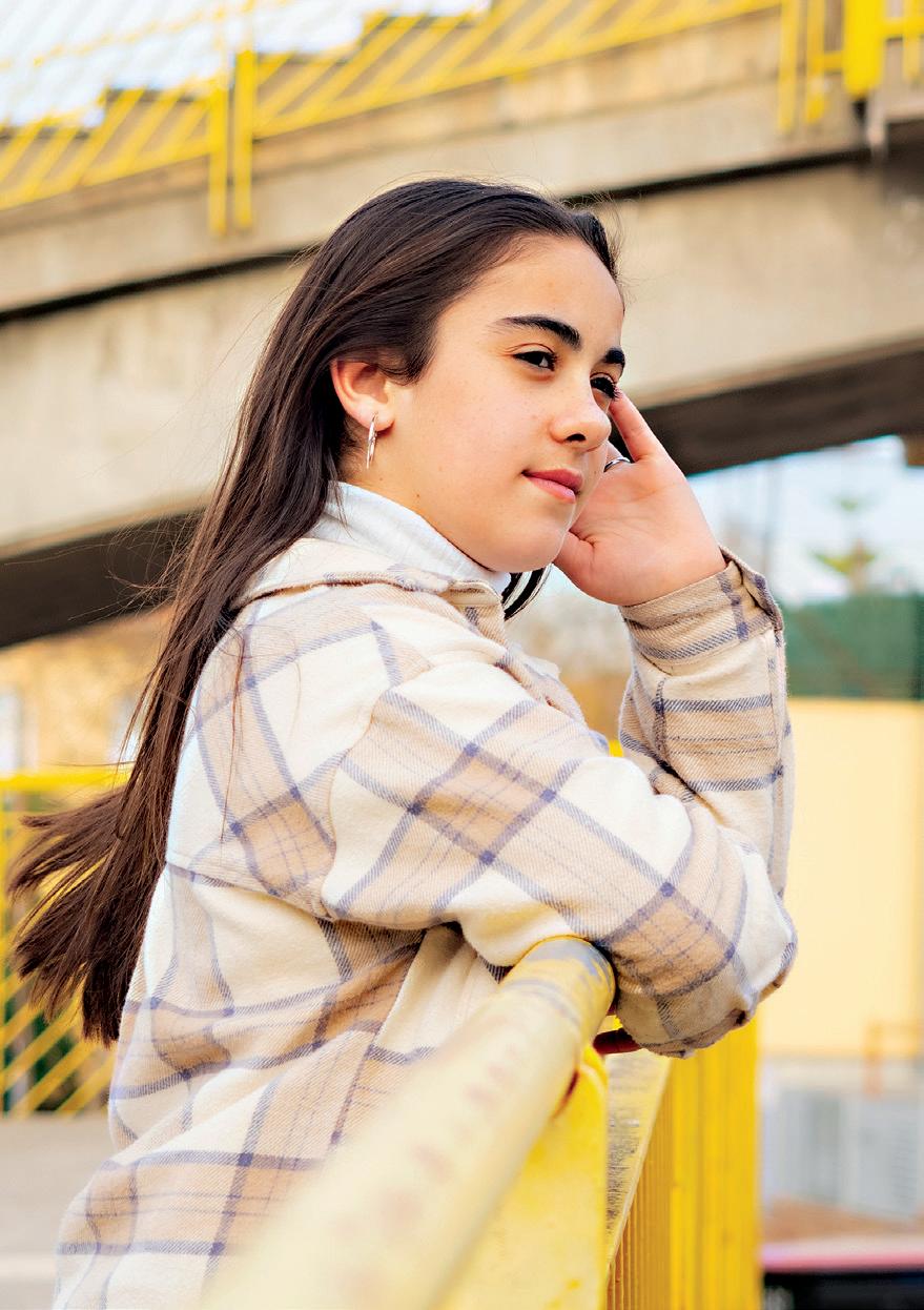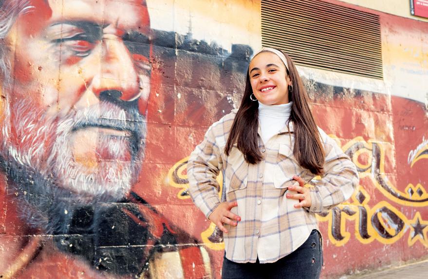 ¡Soy una niña más del barrio! Me encanta jugar a pin pon en la Rambla del Carmel, ir al parque de la Cosmos o estar en los techos de al lado de la Vall d’Hebron. Soy muy inquieta, ¡no me gusta estar encerrada en casa! Mis yayos son de aquí de toda la vida, tuvieron un bar en la plaza Pastrana, y mis papas también han vivido siempre en el barrio. Me encanta vivir aquí y poder mostrar mi arte a la gente que más quiero.