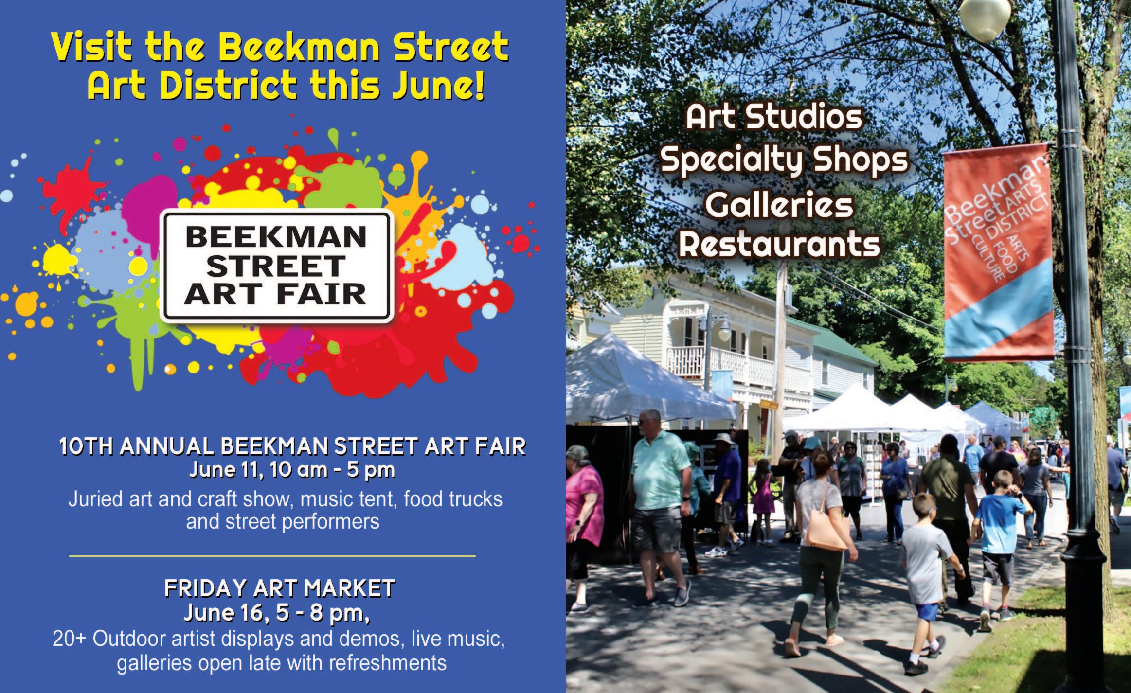 Beekman St Art Fair- Friday Art Market- June 16, 5 - 8 pm, outdoor artist displays and demos, live music, galleries open late with refreshments