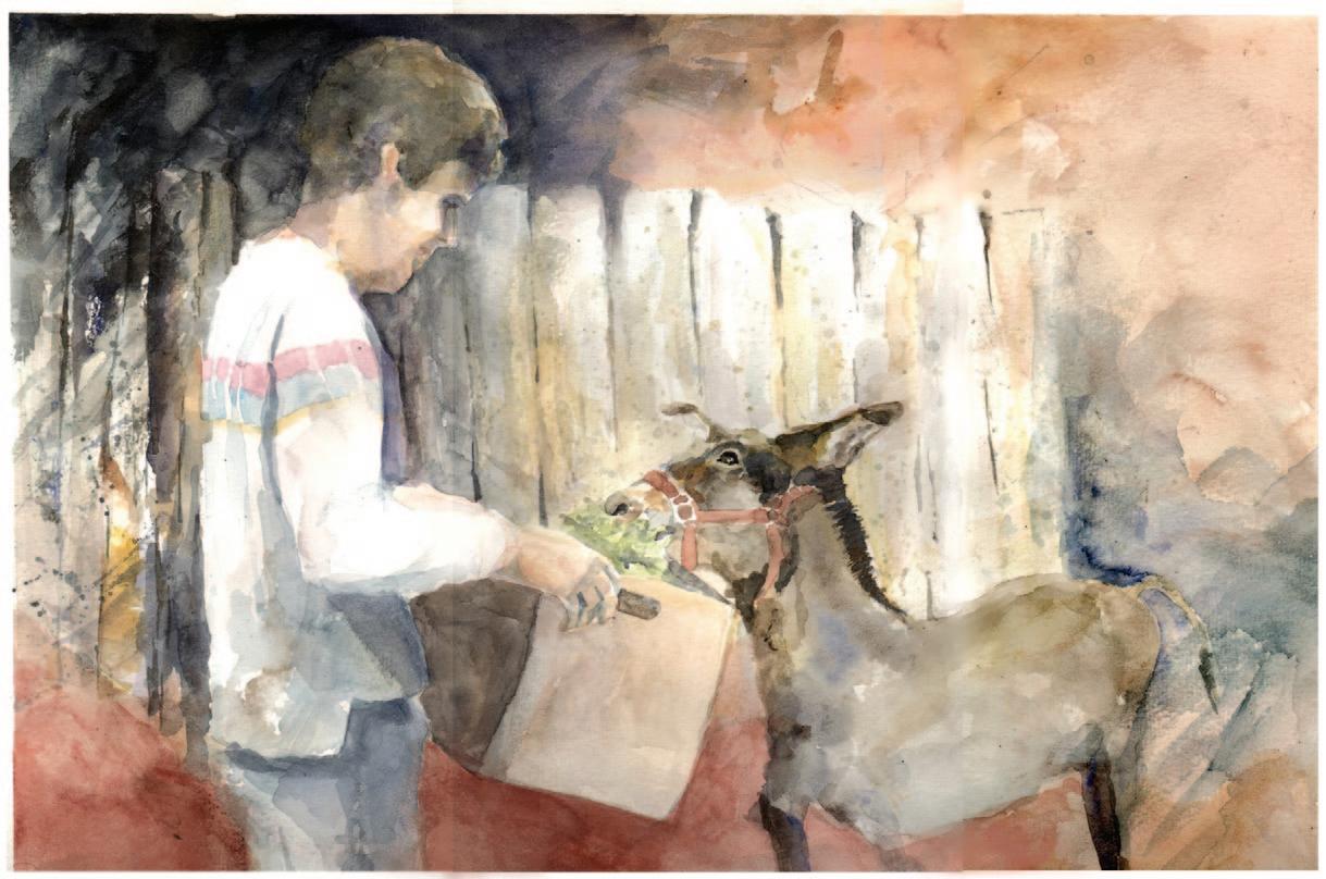 Je ffreys first job in Israel, at the Steiner Program, was feeding the animals. This piece is titled "Good Friends"