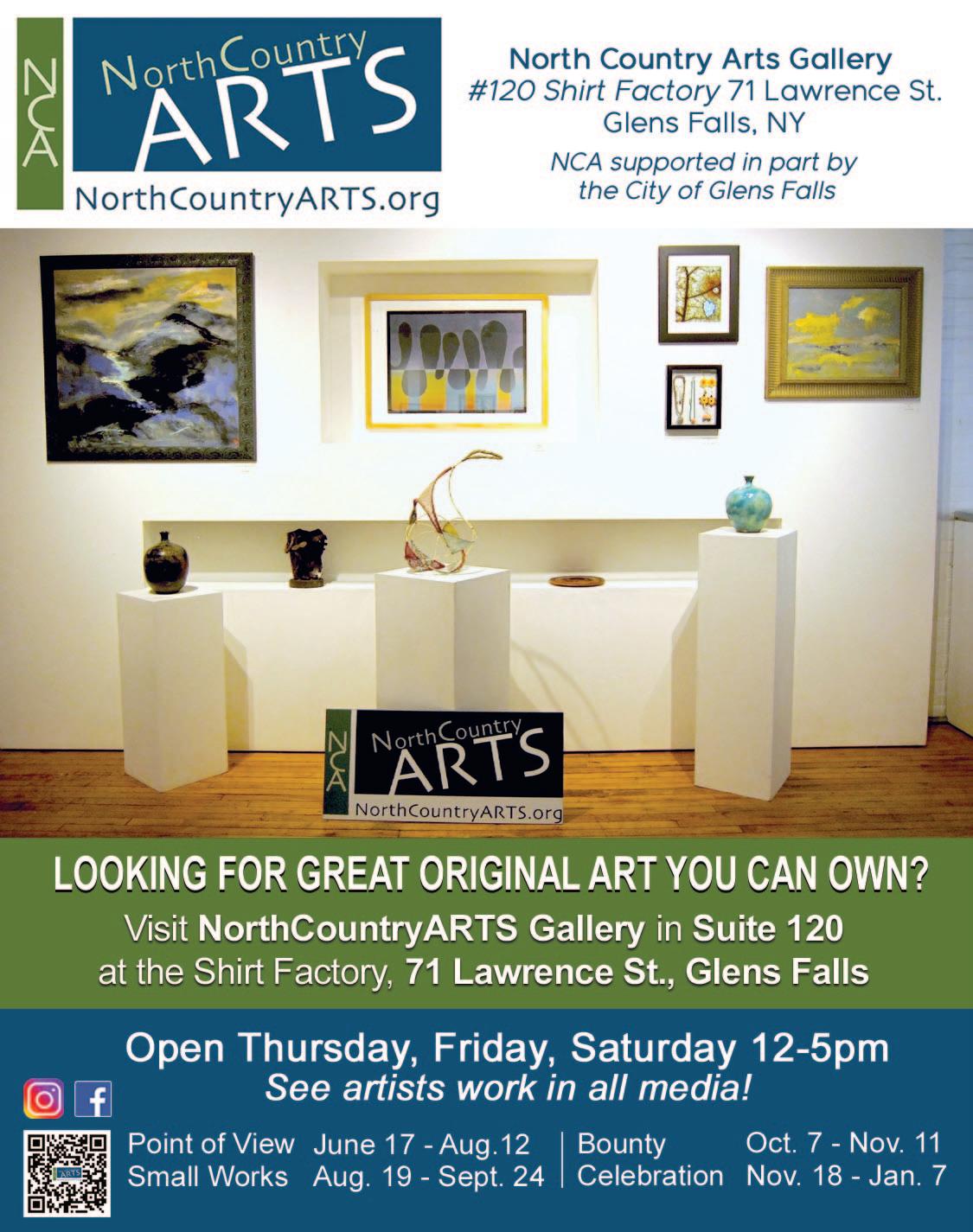 The Guild of Adirondack Artists. NCA's 2nd floor Gallery, 42 Ridge St. Glens Falls, NY info@northcountryarts.org