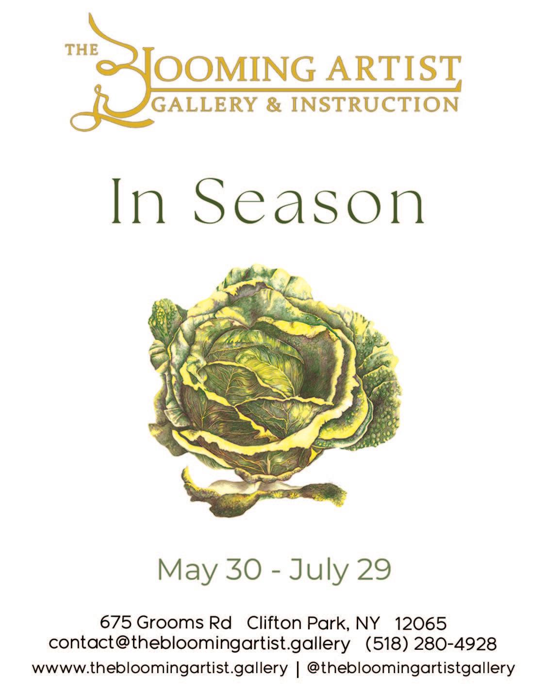 To everything there is a season… The Blooming Artist celebrates this wondrous time here with our newest exhibition, In Season. A visualization of this miraculous season and all of its manifold attributes, this show features the works of all local artists. We warmly invite you to experience this collection of seasonal testimonies with us and our community from May 30th to July 29th.Please celebrate with us and our artists on Friday, June 02nd, during our Community Opening Art Reception (6-8pm). As always, please expect live music & light provisions. The Blooming Artist Gallery, 675 Grooms Rd, Clifton Park, NY 12065. (518) 280-4928. www.thebloomingartist.gallery