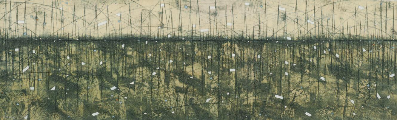 It’s clear that Myott is compelled to explore differ ent techniques to keep himself fresh. To that end, he is currently working on a series of paintings that feature a more monochromatic palette with gestures of charcoal covered in browns