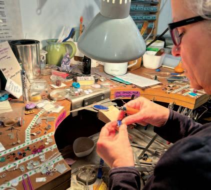 Corina Oberai is an exquisite jewelry designer who favors working with silver and semi-precious stones. “I really specialize in cabochons (pol ished and sometimes faceted gemstones), but I never use prongs, always bezels, little cups that hold the gemstones.)” This marries the fragility of wire with the lasting endurance of stones. She has many favorites among them garnet, amethyst, opals, chalcedony, lapis, azurite, fire agate, prehnite... perhaps you don’t recognize some of these semi- precious stones by name? All the more reason to make that de lightful trip to Washington Street in Ballston Spa and be both dazzled and educated by all that’s within this enchanting gallery.