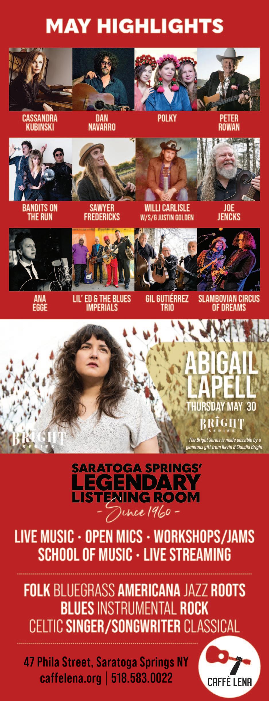 For the full April events schedule, please visit www.caffelena.org Caffe Lena, Saratoga Springs, 47 Phila St, Saratoga Springs, NY 12866