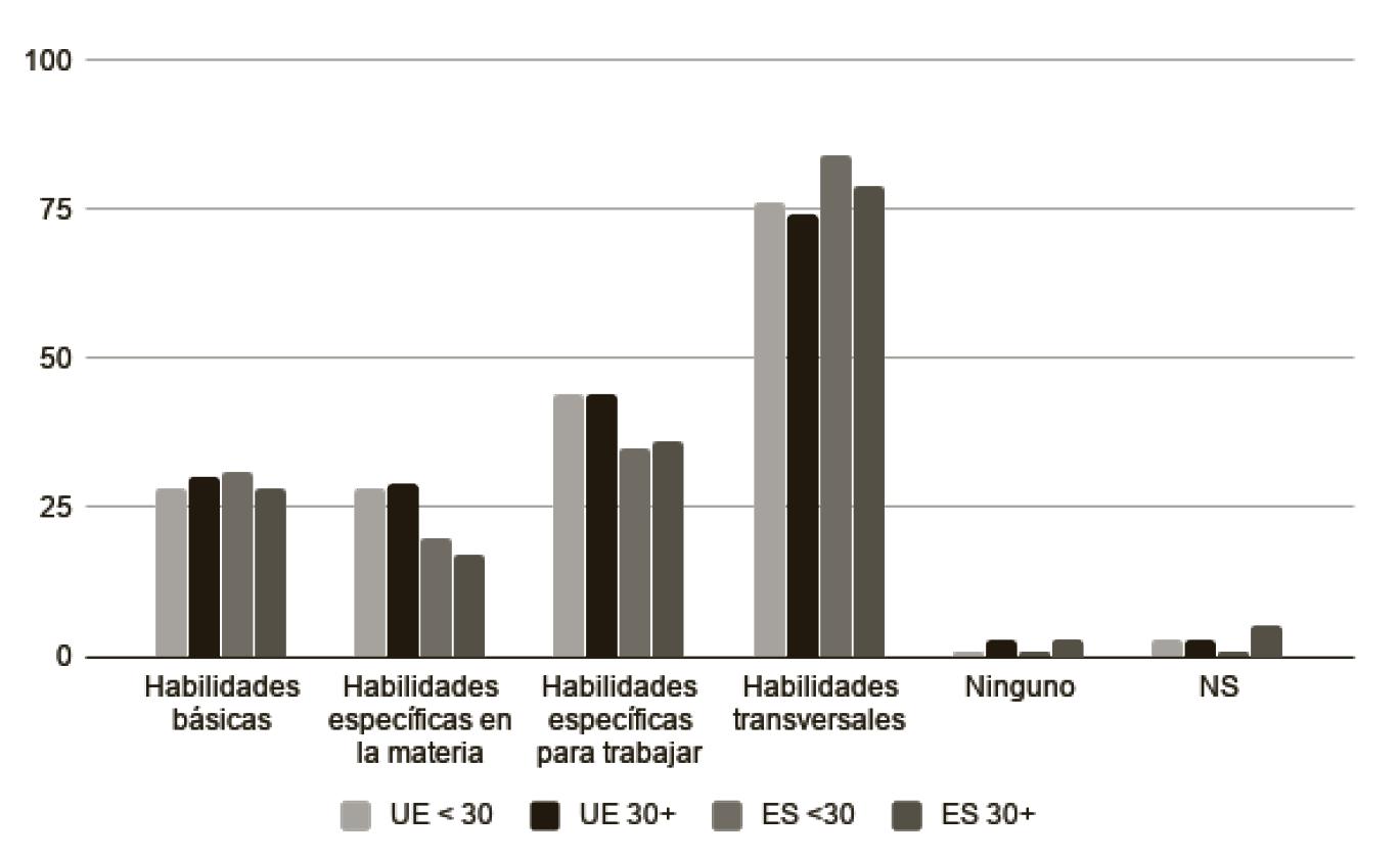 De todos modos, cuando ya nos hemos adentrado casi cuatro lustros en el siglo XX1, los discursos más expertos no se centran únicamente en los desajustes educación-ocupación, sino también en la falta de competencias para el ejercicio profesional. Como decíamos hace apenas dos años, “con las nuevas exigencias derivadas de la sociedad del conocimiento, y su eco en las principales instancias políticas e institucionales, la principal preocupación relacionada con la transición al mundo del trabajo empieza a ser la de dotar a los y las jóvenes de las habilidades y competencias que demanda el sistema laboral” (Santos Rego et al., 2018, p. 76), dando por hecho que las cualifcaciones académicas ya no son sufcientes para asegurar el trabajo (Chell y Athayde, 2011).