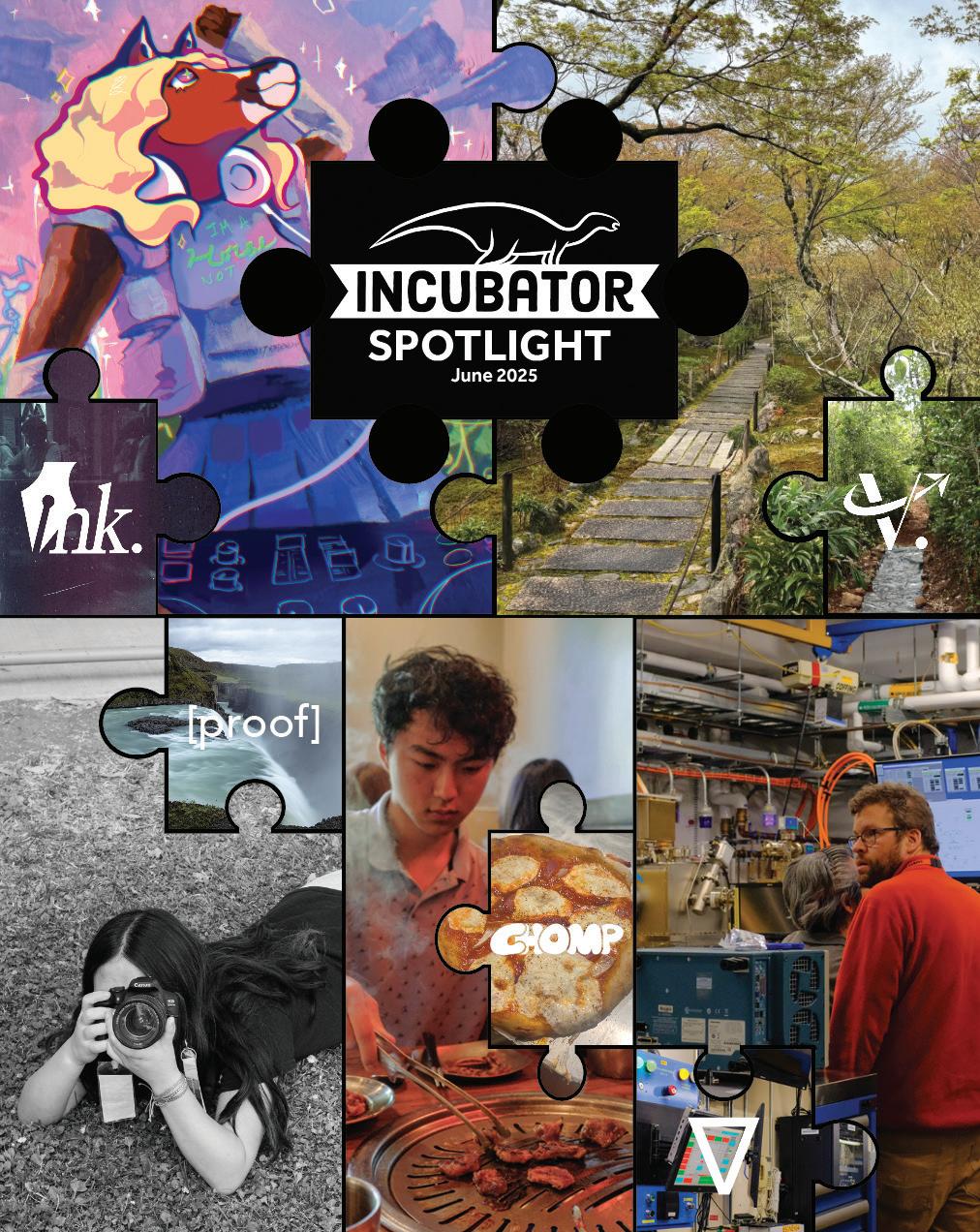 This cover, designed by Amani-Fossati Moaine, represents a puzzle of five Incubator magazines. Each puzzle piece represents a different publication, all fitting together to create one.