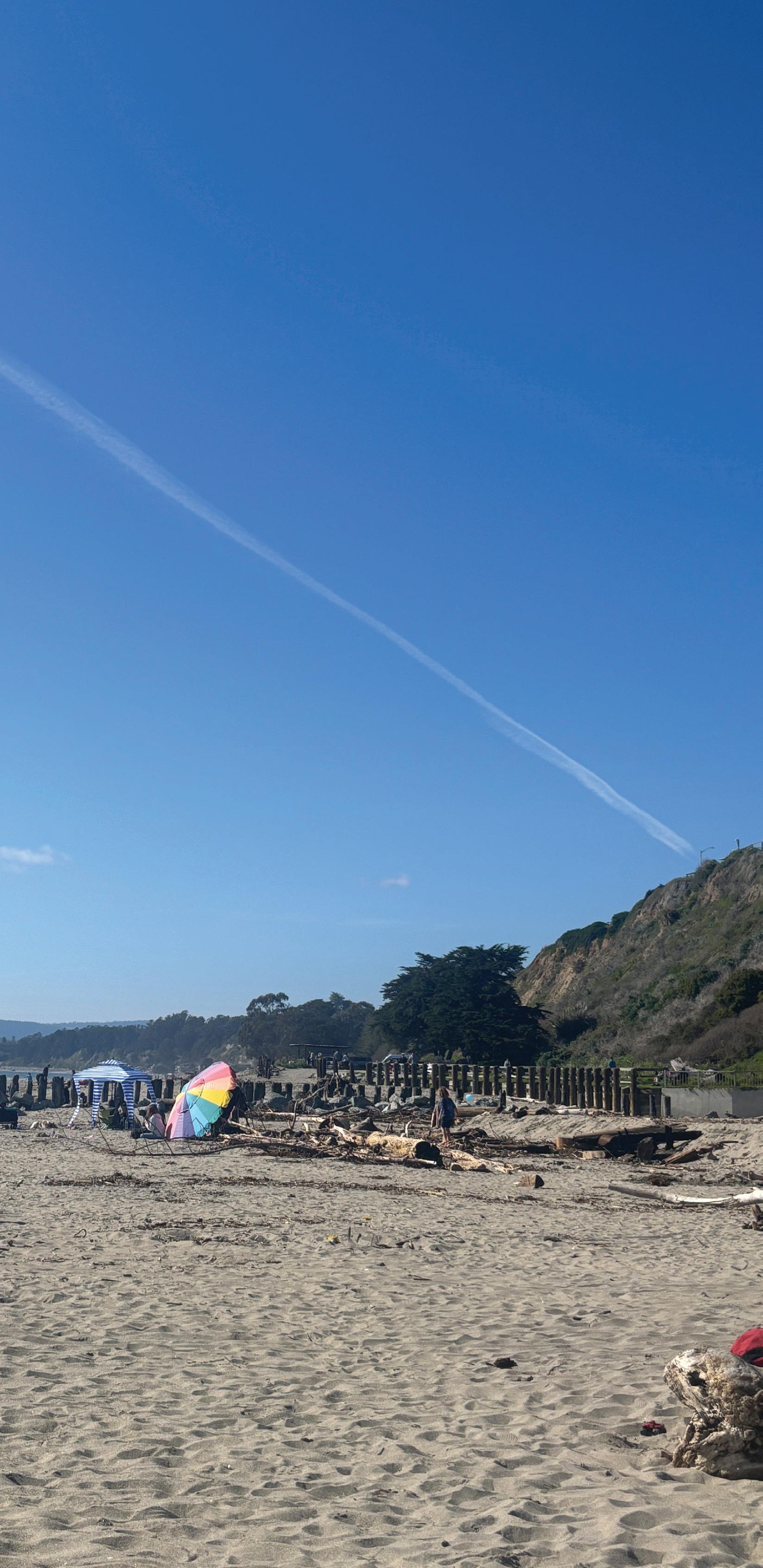 Arriving at the beach, we were immediately greeted by the loud squawking of the seagulls, children shouting and college students yelling as they played flag football. The beating sun greeted us the moment we stepped out of the car, and we joined the long line of cars paying for street parking. The main entrance to the Santa Cruz Beach Boardwalk was crowded with families, college students, and high schoolers like us, but the shoulder-to-shoulder visitors only added more charm to the oceanside landscape. As we set up our sandy camp, we lay down our beach towels to begin our tanning and turn off our brains for the afternoon. Later, tucked in between the cliffs, a hidden concavity filled with seaweed-filled rocks was the perfect place to play with the waves and draw in the sand. Having a mix of the booming sandy beach and the serenity of the waves was the perfect combination to maintain the best of both worlds.