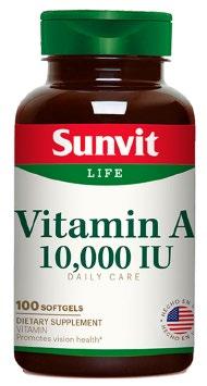 variada y equilibrada, ni de un modo de vida saludable. SUNVIT VITAMINA A (RS: DE-4079): Si usted está embarazada, en periodo de lactancia, tomando alguna medicación o planeando algún procedimiento médico, consulte con su doctor antes de usar. Descontinué su uso y consulte a su doctor si alguna reaccion adversa ocurriera.No está indicado para ser usado por personas menores de 18 años.No sueprar la dosis diaria recomendada.