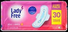 Tela Aloe / Ultradelgada Toallas higiénicas Pqte. de 10 unid. S/ C/PQTE. Lady Free Día 3. 50 ADVERTENCIAS Y PRECAUCIONES DE LOS PRODUCTOS: LADY FREE PROTECTORES DIARIOS/ TOALLAS HIGIÉNICAS ULTRADELGADAS CON GEL Y ALOE/NOCTURNAS NATURALES CON GEL (NSOA00225-19PE/ NSOA00224-19PE/ NSOA00237-19PE): Producto para uso externo, de uso único. En caso de irritación suspender el uso y consultar con el médico. Conservar el producto en lugar fresco y seco. Mantener fuera del alcance de los niños. KOTEX DISCRETA (NSOA01941-12CO): En caso de notar alguna reacción desfavorable al usar el producto suspenda su uso y consulte a su médico. LADY SOFT NORMAL (NSOA00061-11PE): Mantener fuera del alcance de los niños. PRECIOS AÚN MÁS BAJOS PAGANDO CON TU TARJETA 18 5.00 S/ Tela Aloe / Ultradelgada Toallas higiénicas Pqte. de 10 unid. Lady Free Nocturna C/PQTE. 3.90 C/PQTE. S/ 7.50 S/ Tela Aloe Toallas higiénicas Pqte. de 30 unid. Lady Free 6 . 50 S/ C/PQTE C/PQTE 11.00 S/ C/PQTE Normal Toallas higiénicas Pqte. de 42 unid. Ladysoft 14.90 C/PQTE Normal / Cuidado Avanzado Toallas higiénicas Pqte. de 60 unid. Kotex 13.90 C/PQTE. 16.90 S/ C/CAJA Tela Aloe Protectores diarios Caja de 120 unid. Lady Free 15.90S/ C/CAJA CUIDADO ÍNTIMO 3.50 S/ C/PQTE Tela Aloe Protectores diarios Pqte. de 15 unid. Lady Free