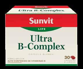 ADVERTENCIAS Y PRECAUCIONES DE LOS PRODUCTOS: SUNVIT ULTRA B-COMPLEX (RS: DE-3899): Hipersensibilidad conocida a cualquiera de los componentes de la fórmula. Si está en periodo de embarazo, lactancia, tomando medicamentos, o si piensa realizar algún procedimiento médico consulte