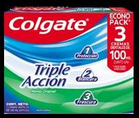 consulte a un odontólogo o médico. No se recomienda el uso en menores de 6 años. No ingerir. COLGATE TRIPLE ACCIÓN (NSOC72336-16CO): Su uso es recomendable para niños mayores de 6 años. Niños de 6 años y menores: usar una cantidad de tamaño de una gota (0.25 g) supervisados por un adulto para minimizar que sea ingerida. No ingerir mantenga fuera del alcance de los niños. COLGATE LUMINOUS WHITE (NSOC44215-11CO): Mantener fuera del alcance de los niños. Usar bajo la supervisión de un adulto. Almacenar en un lugar fresco. No ingerir.