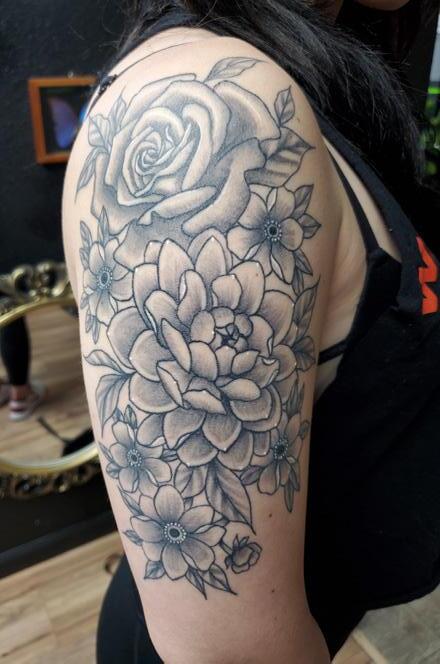 An independent tattoo artist, Mariyah is three years into her journey. She also splits her time as a high school special education and art teacher. She graduated from UC Santa Barbara in 2020 and enjoys reading, video games, and painting. She has been an artist for 10 years with works on various mediums, which influences her love for all art and tattoo styles. She is best known for her line work, B&G, and color work and takes great interest in designs that incorporate all three styles into unique floral-centered pieces. However, she is a well-rounded artist who is mastering several techniques, including color realism, script, traditional and neo-traditional. As an independent artist, she prides herself in creating a safe and inclusive space for women, LGBTQIA, and POC in her studio ⸺ What advice would you give to someone about getting his or her first tattoo? (A tattoo virgin) Generally, research research, research! There is always an artist out there for you, don’t settle for cheap, save up for someone who will give you what you want. Tattoos are permanent. Make sure to find an artist who posts their work