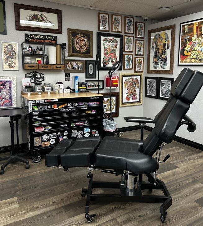 Tattoos are no longer just for the hard-core rock and roll stars. A large portion of our clientele are teachers, college students, stayat-home moms, part of the LGBTQ+ community, professionals, and so on. The shop is here for anyone and everyone. The tattoo industry is no longer looked at as taboo.