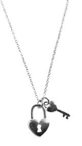Heart padlock and key necklace: Sharing in all stories of love and romance, this special necklace is a petite and short style. Made from sterling silver, it looks fabulous on its own or in a layered look.