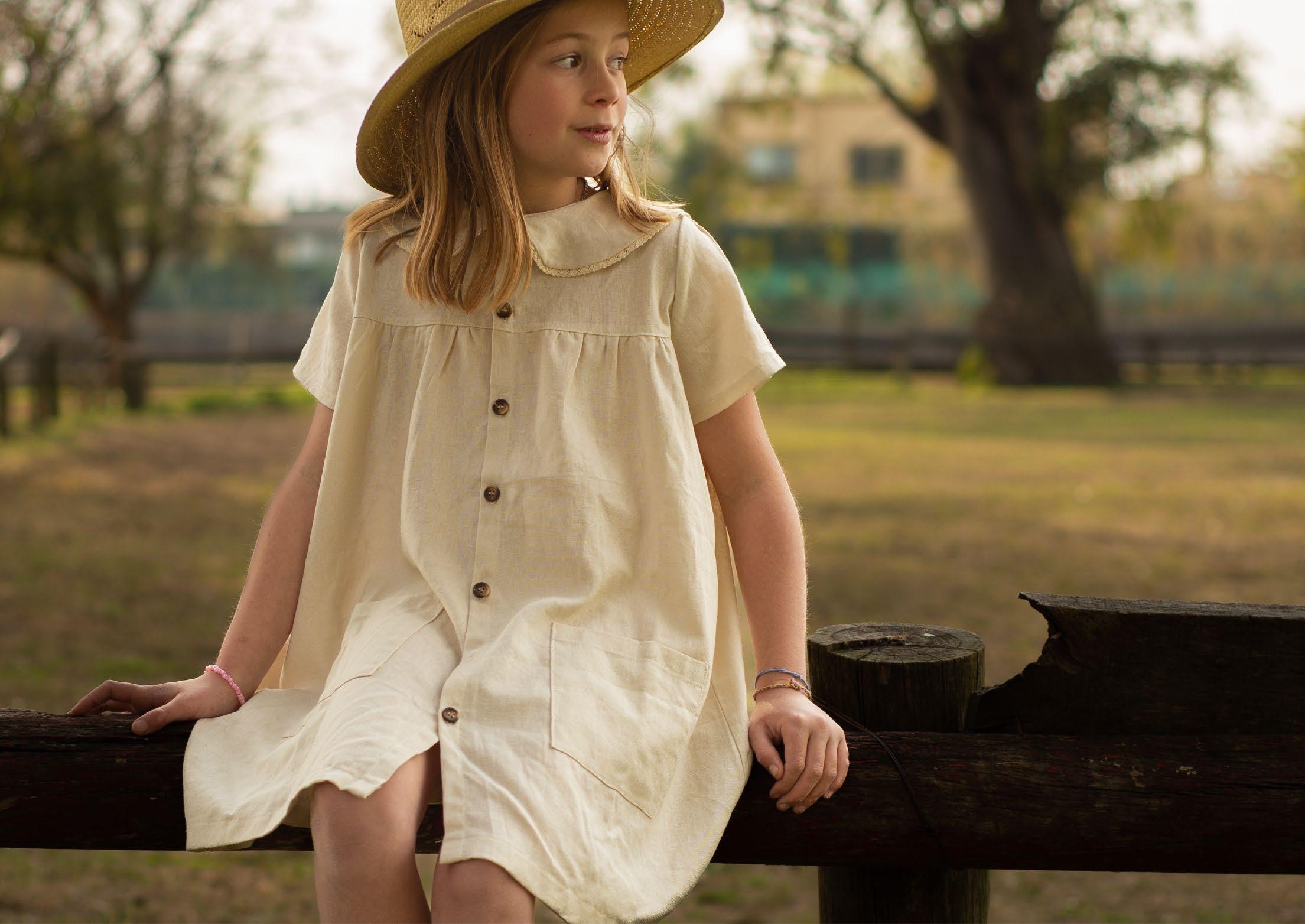 verano Vestido Precio Tela Lino con detalle en puntilla de broderie crudo Carlota Crudo $2.800 Talles 621 4 8 10
