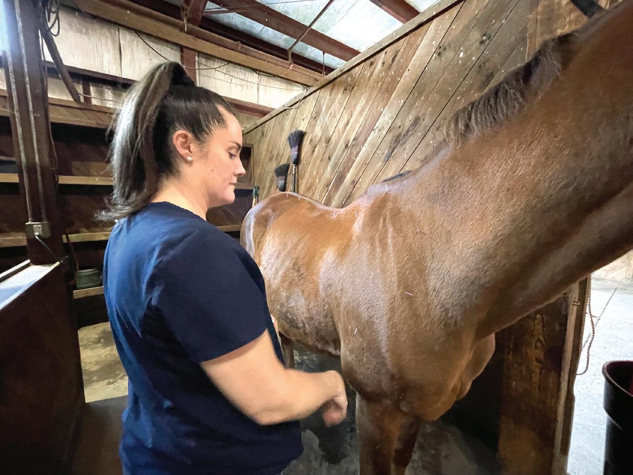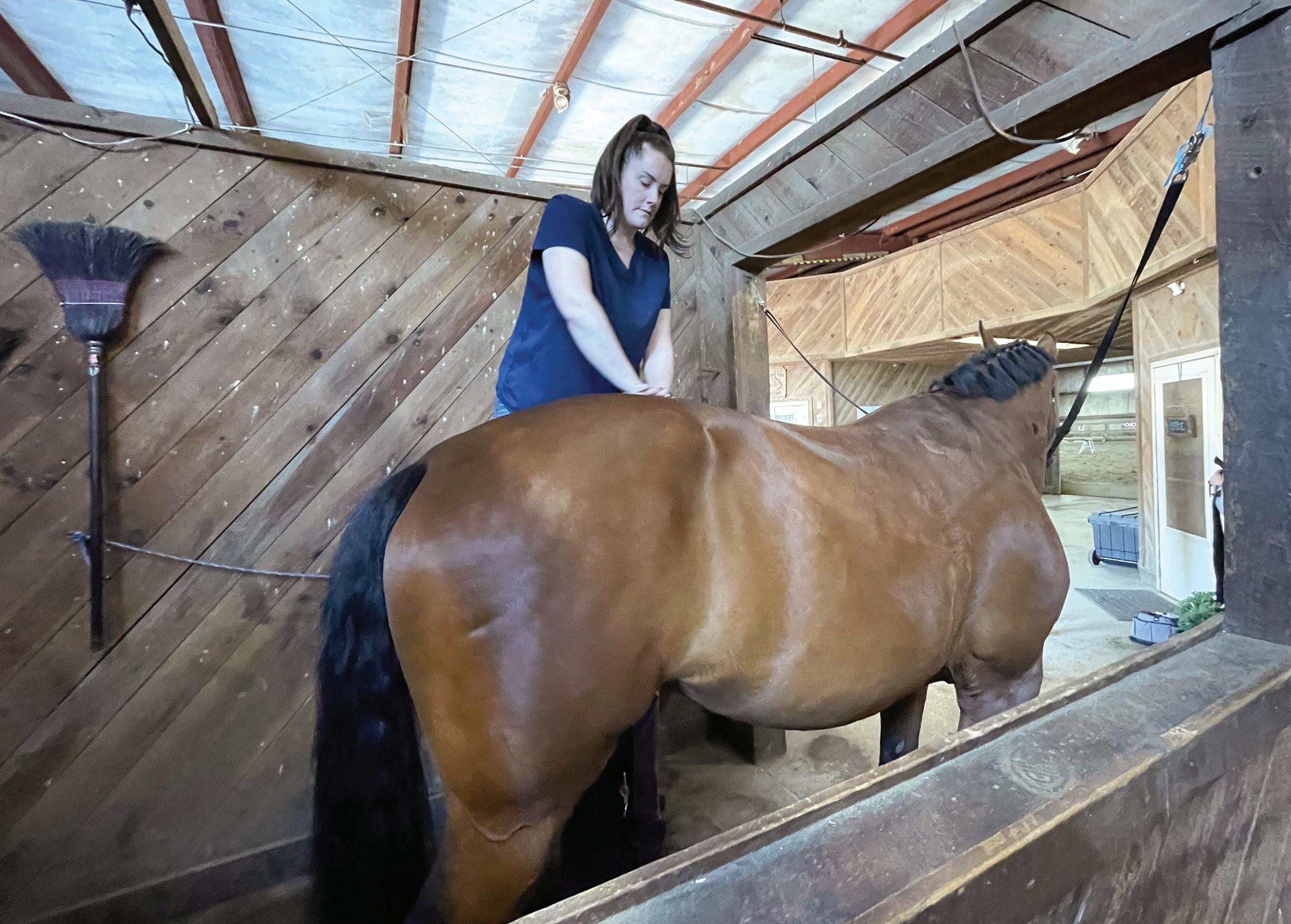 “This horse (Marley) doesn’t have any real issues, so to speak, but she’s a high-level athlete (jumper),” said Wendy Brayman, who owns Marley and Hunter Ridge. “So, hers is more of a preventative situation as opposed to a ‘We’ve broken it, now fix it.’ So, we try to stay ahead on this horse because of the level of competition that she does, so that she doesn’t ever get uncomfortable and not want to do her job.”