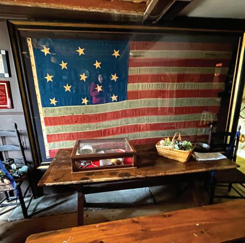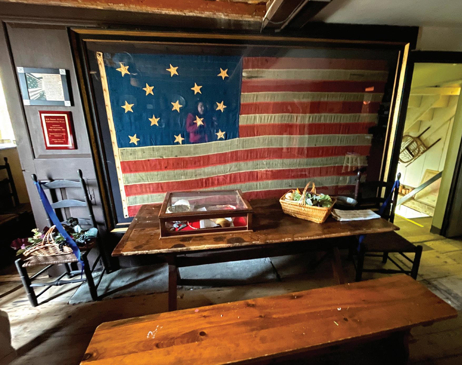 An early American flag shown at the Leffingwell House—its handsewn stars and stripes reflecting both a nation in formation and the people who lived through it.