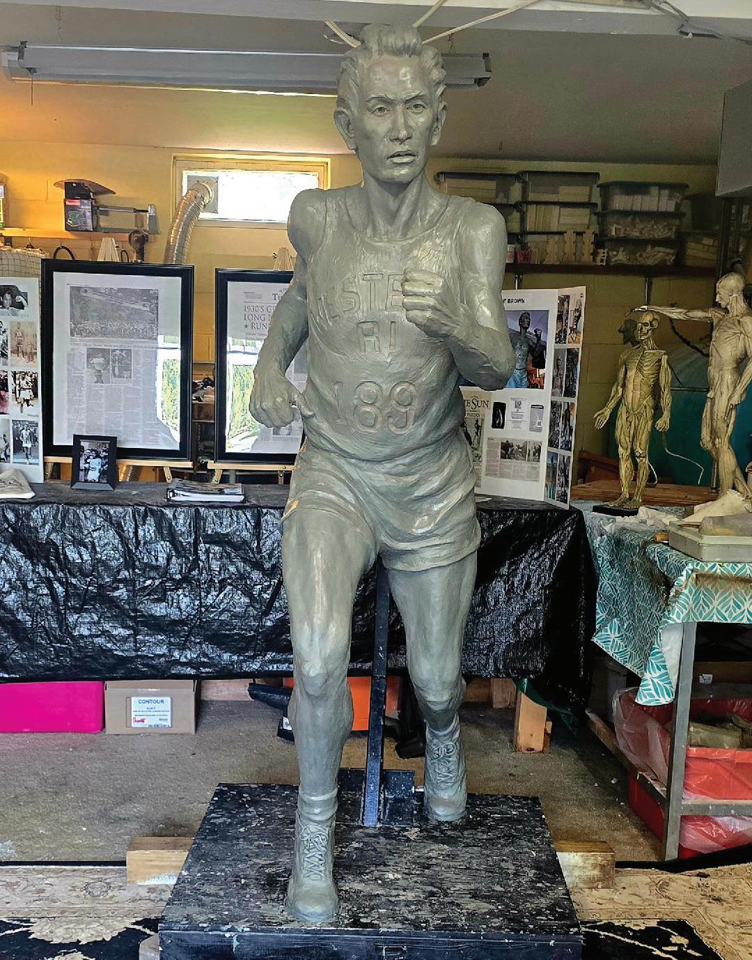 Her name is Serena Bates, and she’s very well-known and respected in the fine art world, both in the U.S. and Canada as a consummate master sculptor. It’s why Tarzan’s family and a local committee of runners and others commissioned her to create a bronze statue of Tarzan. Although he is a legend in Westerly, RI and in running circles, his fame as a marathoner with his remarkable history, talent, and quirks is not widely known. It has been long overdue to create a monument to this outstanding individual.