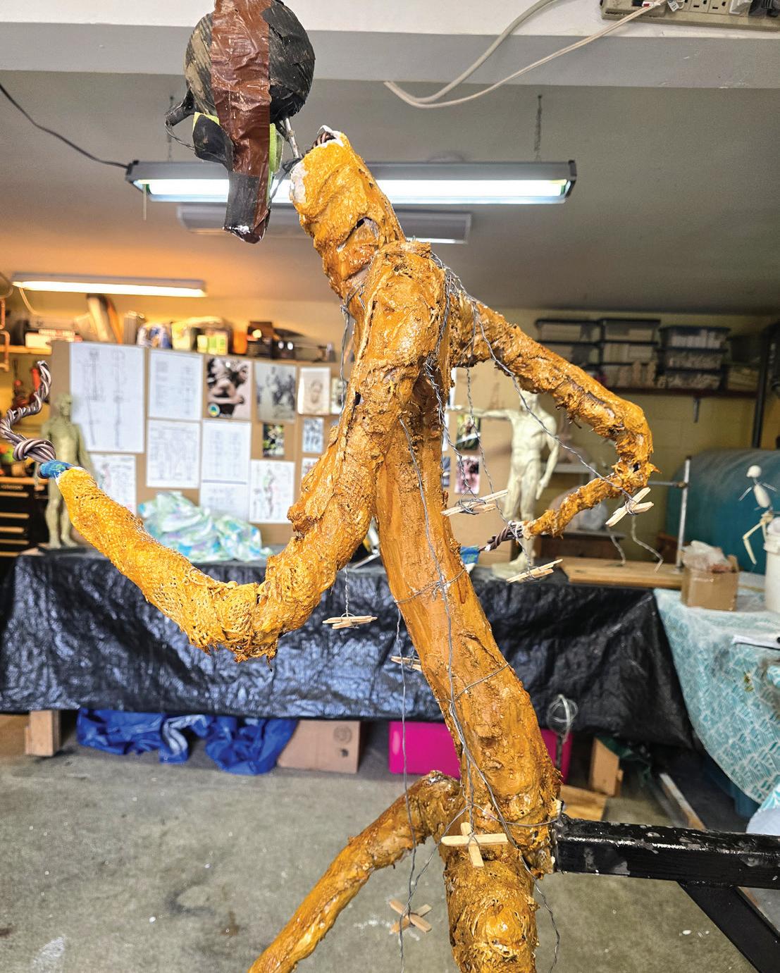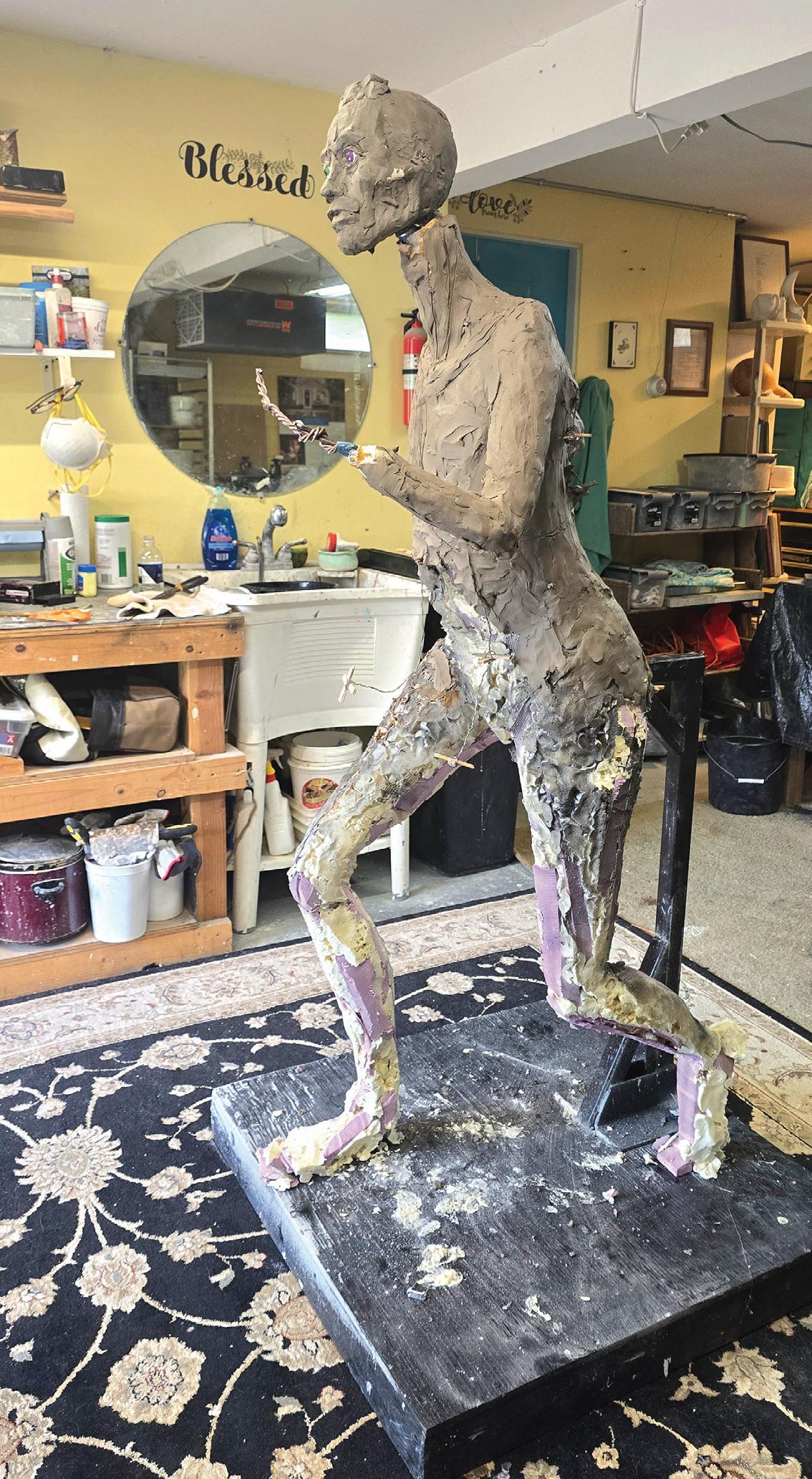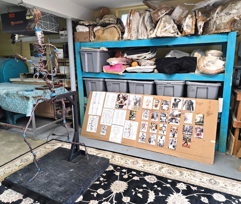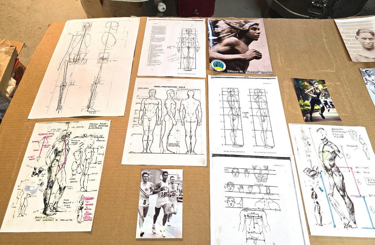To see how Serena Bates works is a master class not only in fine art but in biology, anatomy, patience, and detail. Her studio is filled with anatomy books, drawings, and photos of muscle groups, tendons, arms, legs, backs, and buttocks. For this project, she has taken numerous photos of her son who shares many of the same measurements simulating Tarzan’s body. Working intensely, Bates acknowledges that this is an arduous process, but it must be exact. “I have to find the life spirit of Tarzan Brown. I need to focus on the portrait of this man.”