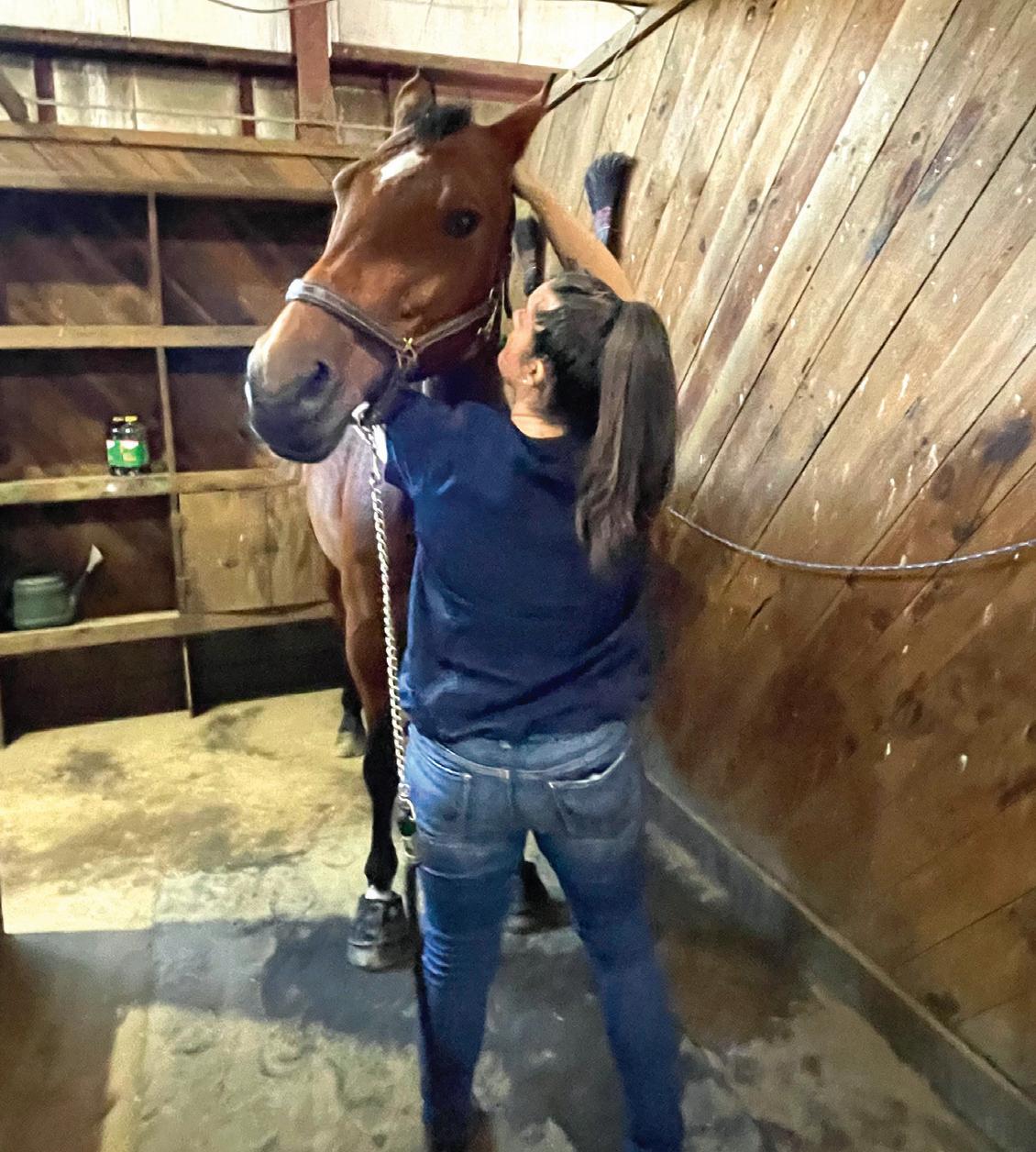 While attending University of Rhode Island, she was a member and captain of the URI Equestrian Team. Later, she studied at St. George’s University in Grenada in the Caribbean, completed clinical training at Auburn University in Alabama, and then interned at Rhinebeck Equine in New York, which was a turning point. “I worked with a surgeon who was certified in acupuncture. So we did a lot of acupuncture on patients that she would see on her day-to-day, depending on what was going on,” both on farms and at the hospital.
