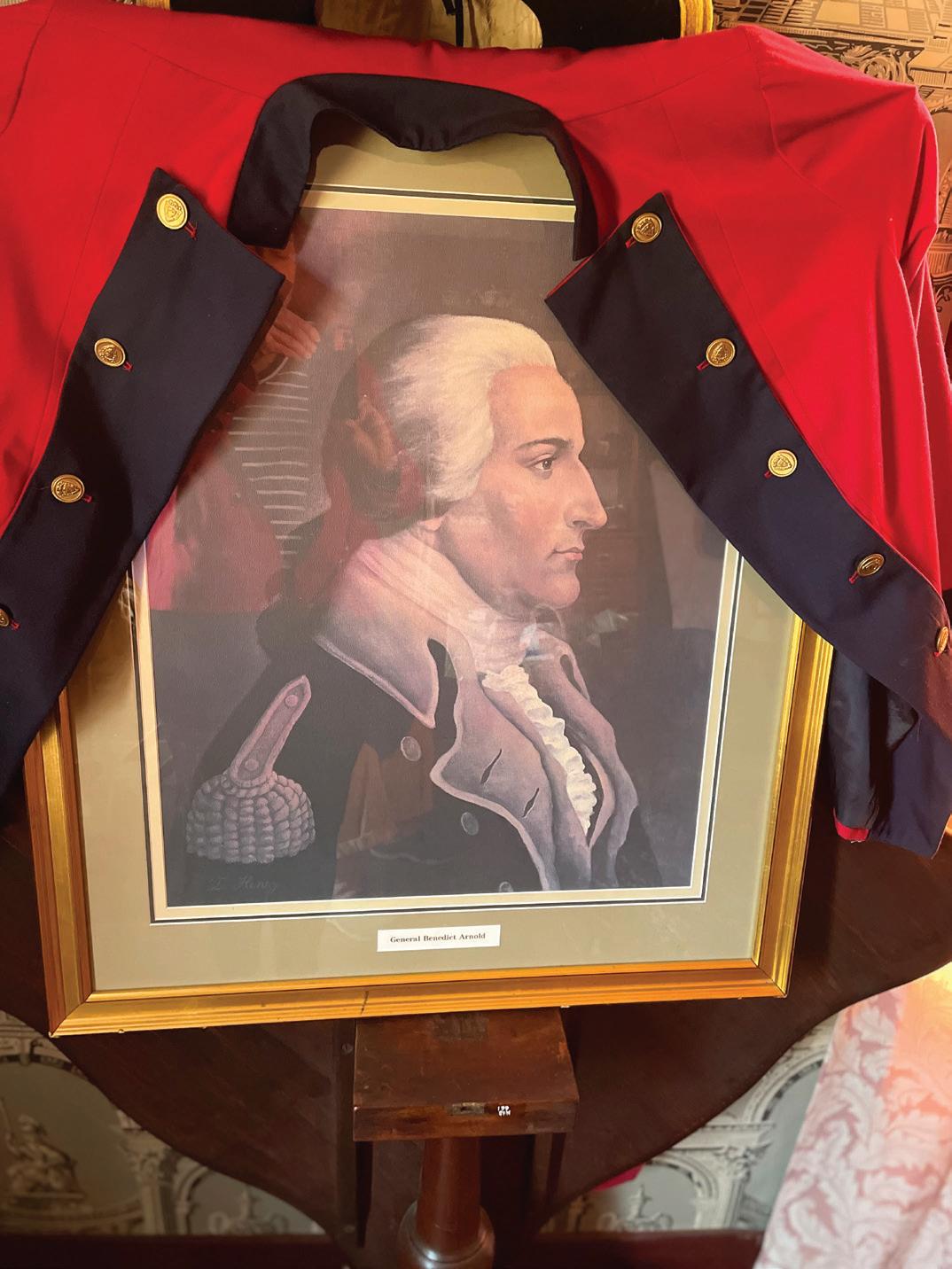 A portrait of Benedict Arnold— displayed with a Revolutionary-era coat, underscoring his early ties to Norwich and his legacy.