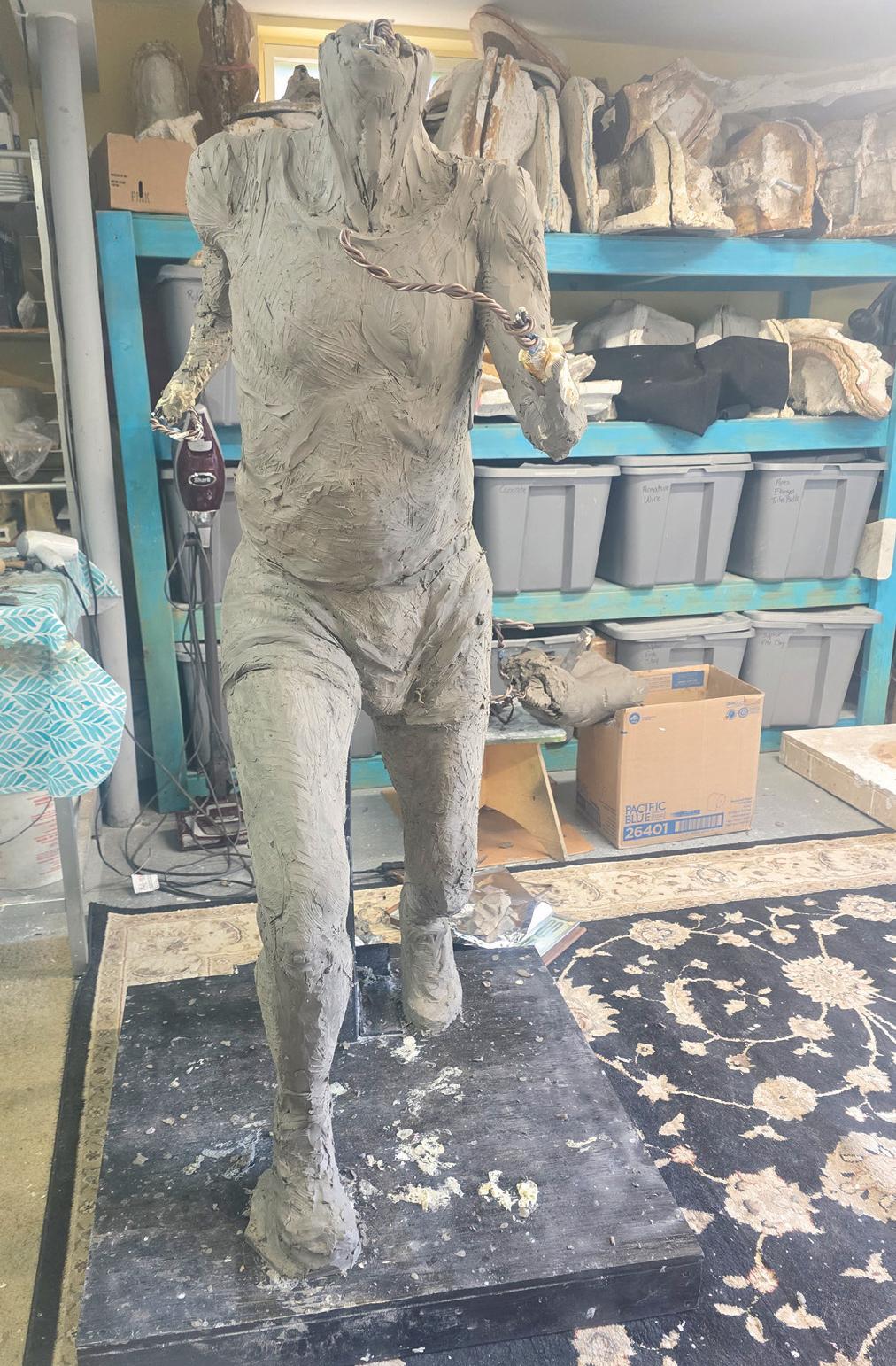 Serena Bates is petite in stature, but handles hundreds of pounds of clay, building her skeleton from the inside out; the first step is making a maquette, a fine art term for a small mock-up of a fully realized three-dimensional sculpture. Eventually, she builds a life-size maquette using canons of measurement. She reinforces with steel wire, foam, burlap, and plaster, then clay goes over the armature. The next step involves the delicate trip to the Massachusetts foundry where the mold is actually cast. For this, the foundry workers come to Bates’ studio and actually remove the head and arms, so they are not damaged during the ride.