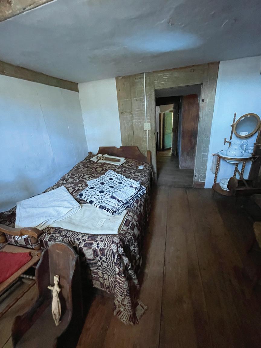 They didn’t use patterns. You counted your stitches on the linen.” Camila said they ask children where they think they would go to the bathroom at night when there are two feet of snow. Eventually, Camila points to the chamber pot (a small bowl), explaining that they might be asked to empty it in the morning.