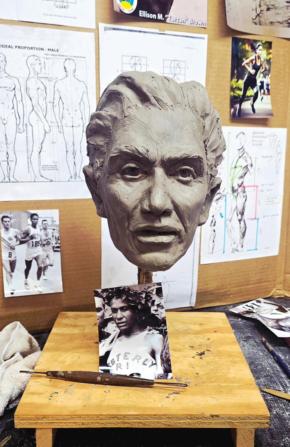 Bates, who has been trained at the Lyme Academy College of Fine Arts and the Rhode Island School of Design, holds so many distinguished awards in the field that they cannot be listed. But check her website, it is stunning. Her worldwide awards and recognition are legion, her extraordinary sculptures brand her as a consummate storyteller reflecting narratives defined by her work. “I tell stories through art,” Bates says. “I coax form from raw matter.” Which is precisely what she is doing for The Tarzan Brown Project, an initiative begun by his nephew, Byron Brown, Chief Sachem of the Wiquapaug Eastern Pequot Indian Tribe, and a handful of other family members and local residents. Nearly a year ago, they commissioned Serena Bates to create a life-size statue of Tarzan as a lasting memorial to this extraordinary athlete who made his mark in the runner’s world, and more importantly, made his mark as a man.