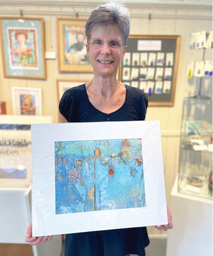 Artist Nancy Nielsen with one of her many prints. Photo by Jan Tormay Caddie, by ©Carol Mossa
