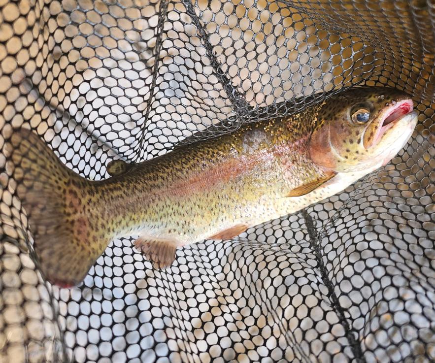 “When it comes to our rivers and streams its hard to be a good angler without knowing the envir r-tance of the symbiotic relationship between the angler and the environmentalist. “For me fishing and conservation go hand in hand. OurunofficialmottoatT ffi Trrout Unlimited is‘GiveBacktoThePlacesThatWWeeFish.’ W We e need people looking out for and taking careofthese special places; our streams, our rivers.” He says with conviction, “A A lot of the times these are places that are most at risk e right under our noses. W and ar Weeare fortunate in Connecticut to have hundreds if not thousands of places to hike and fish in our ests. W for We e need more people advocating and becoming champions for our local resourcunof es.” Overdevelopment, r fff, fertilizers, dams, and trash tossed from the car window are just a few of the hazards our streams face in today’s modern age. For anglers, especially those who fish Connecticut’s freshwater y streams, they are one of the best resources for gathering data and reporting problems