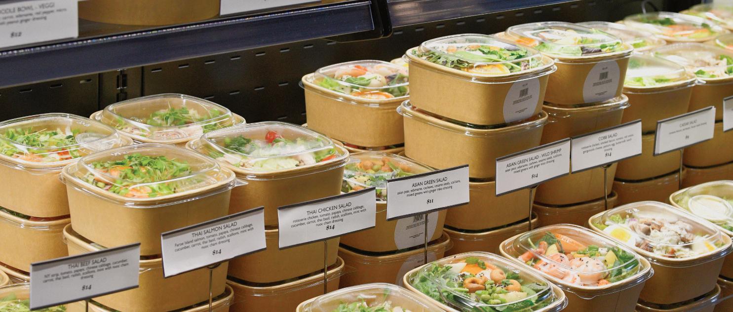 a specific job. It might be washing lettuce, then putting it in the spinner, chopping vegetables, filleting salmon (we do that right here the old-fashioned way), peeling our own potatoes.” Cerosimo pauses and says matter-of-factly, “We sell thousands of meals every day, and everyone here is a part of that. Many supermarkets with grab-and-go-meals prepare 10 salads at a time, we do 80, and they all sell that same day.”