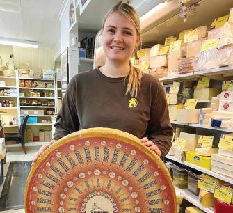 You will find that cheddars come in all different sizes and shapes, and like all cheeses, the size will make a difference in the taste. Since all cheese ripens from the outside in, a large 40-pound wheel will ripen differently than a small five-to-ten pound wheel. Some will have a natural rind with a combination of cheese cloth and wax, while others might have a plastic rind. Then there’s the small, any-size waxed or plasticcoated cheddar, which are usually stamped or cut out of larger wheels. What’s left of the original cheese in this process turns into cold pack or processed cheese. It’s very important to taste these offerings because they will vary immensely.