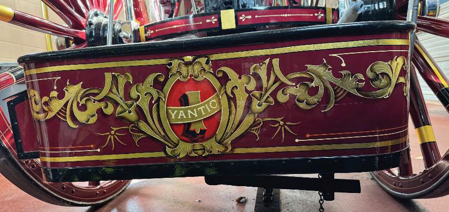 lent 900-pound bell stands on display on the right side of YaanticFi Company No. 1 in the Norwich, Connecticut village at 151 YaanticRd. part of a memorial for its deceased veteran volunteer firefighters and reminder of an earlier time when it topped a bustling mill across the s