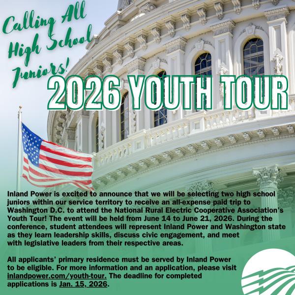 Attention Students: The Inland Power Community Foundation is pleased to offer 15 - $1,000 scholarships to current Inland Power members and their children. Scholarship applications are due by January 15, 2026. For more information, please visit inlandpower.com/scholarships