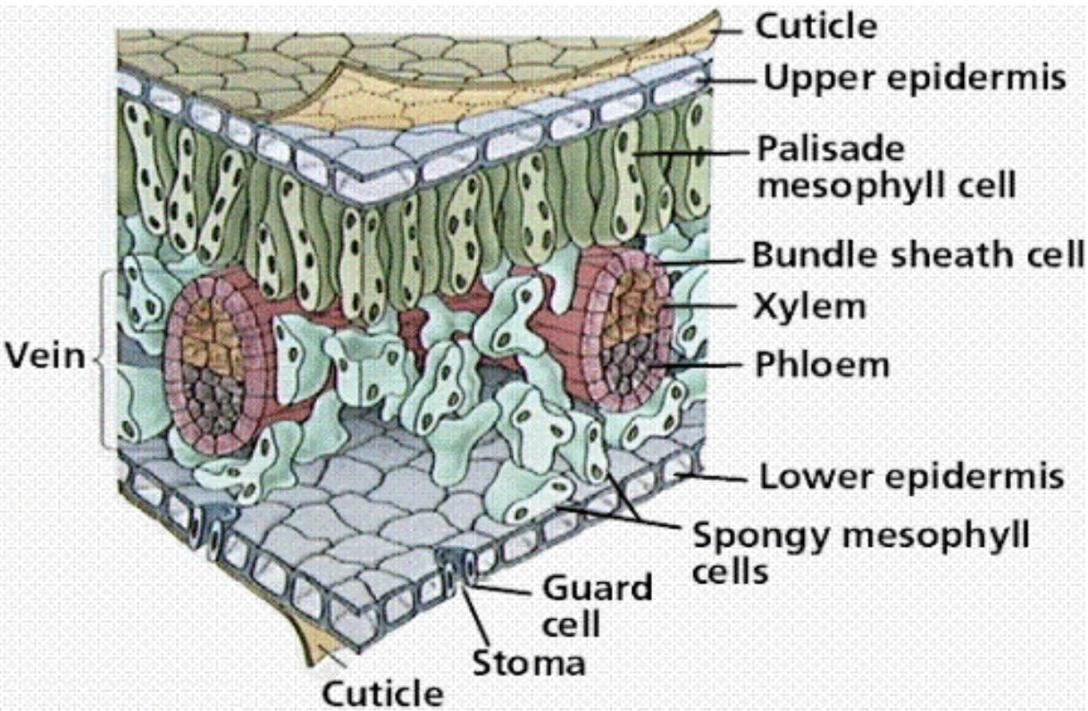 TRANSPIRATION= the mechanical process within the plant in which H2O moves through the plant via the xylem. H2O is absorbed by root hairs and pulled upwards until it is evaporated through the leaf pores (stomata). This evaporation “pulls” H2O from the roots up to the top of the tallest trees.