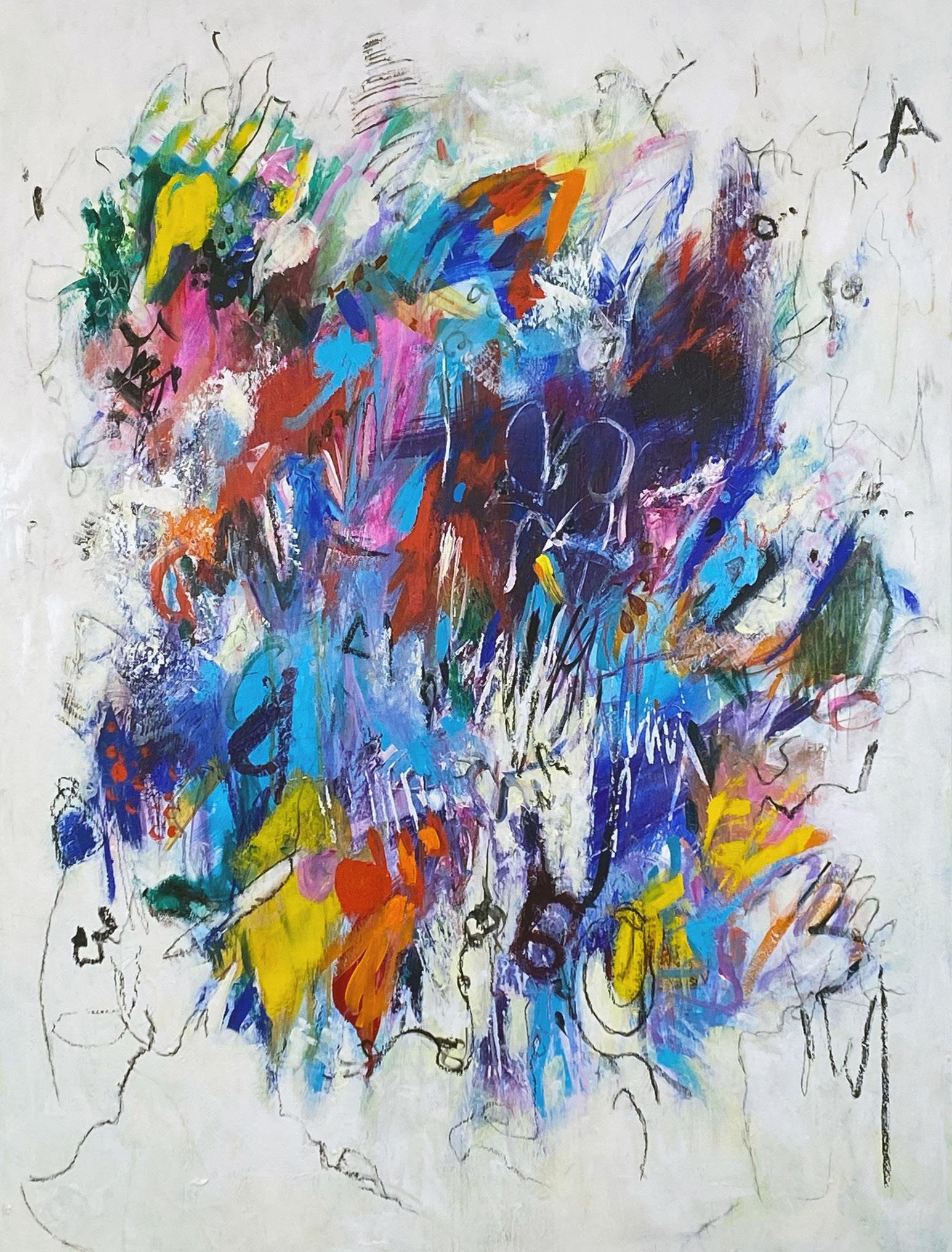 My love of color has always been a driving force in my work. I continue to pursue this love and create places of pure joy and exuberant aesthetic relationships. This applies whether I am using acrylic paint or soft chalk pastels. The dialogue between seemingly random gestures, textures, and shapes provide a visual adventure. My process is dynamic and “in the moment”….a conversation with the piece. I believe that the journey is as important as the destination.