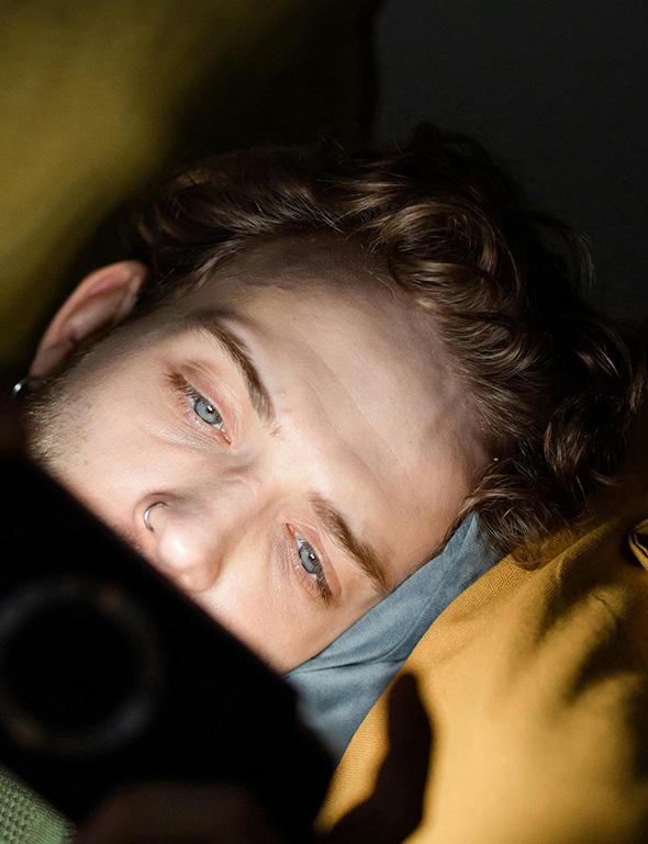 Ciegos de luz azul es el título con el que el artista Gonzalo Martín, conocido como Taquen, ha bautizado a su trabajo en el que plantea el aislamiento que generan las tecnologías. Y así lo refleja a través de un díptico en el que por un lado representa a una persona mirando el móvil y en el otro a esa misma persona bailando y llena de vitalidad.