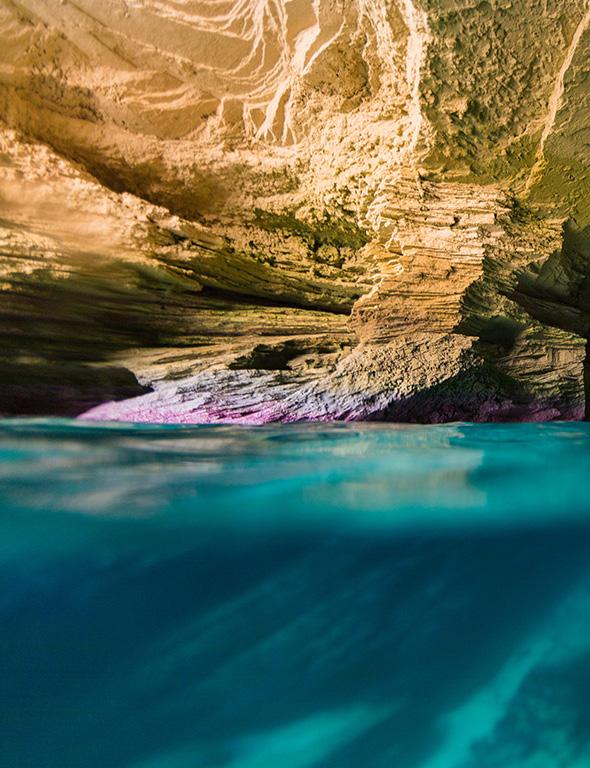 en las aguas poco profundas del atolón Lighthouse Reef, a unos 70 km de la costa. Con 300 metros de diámetro y 125 metros de profundidad, este círculo casi perfecto de aguas azul oscuro intriga a los científicos y encanta a los viajeros de todo el mundo. Situado cerca de Ambergris Caye, el Blue Hole es la mayor formación geológica de este tipo en el mundo. Se trata de un antiguo sistema de cuevas que se derrumbó y se sumergió hace aproximadamente 10.000 años, al final de la última Era Glacial. El Blue Hole, que se hizo mundialmente famoso gracias al legendario explorador y documentalista Jacques Cousteau, quien lo clasificó como uno de los mejores puntos de buceo del planeta, está en la lista de deseos de prácticamente todos los buceadores del mundo.